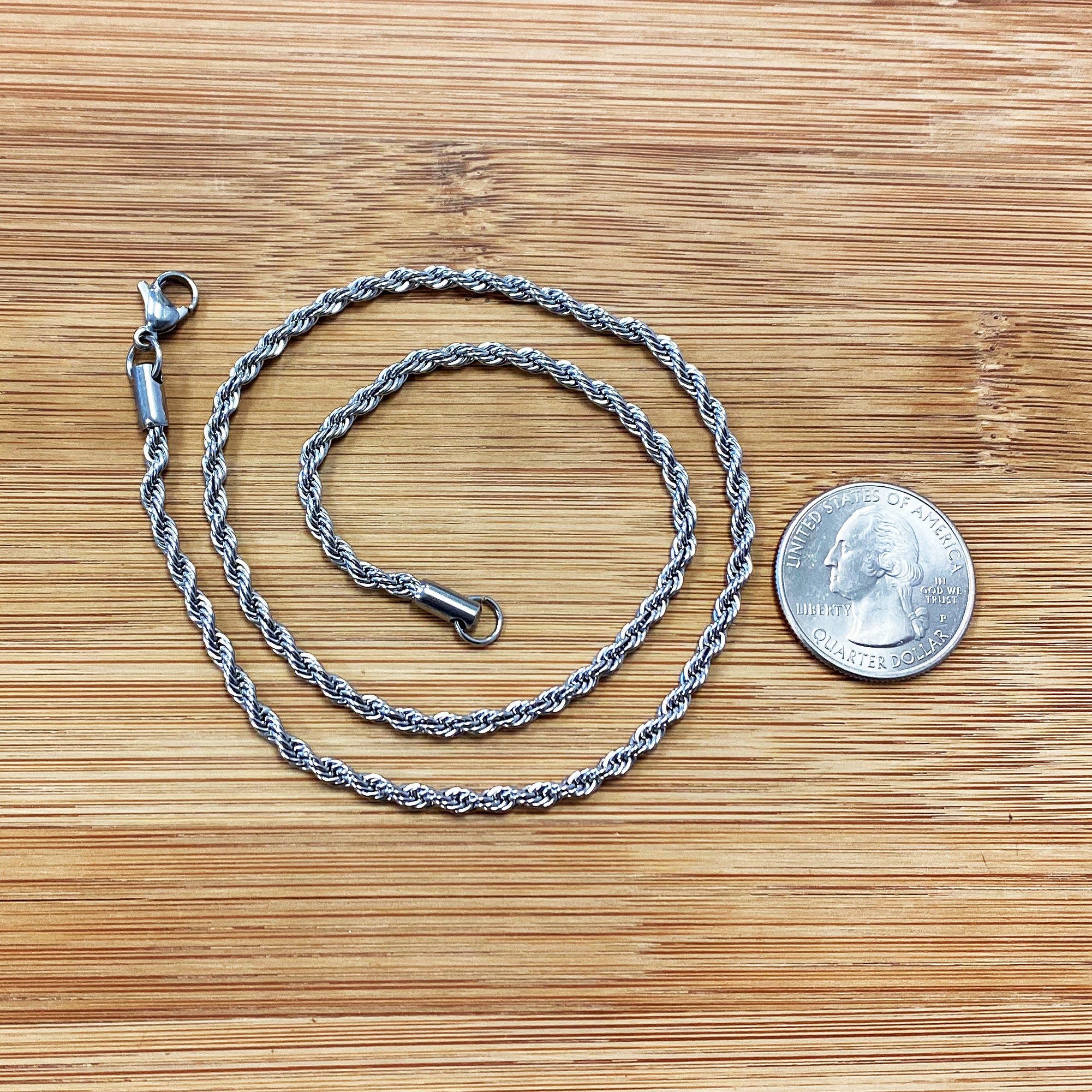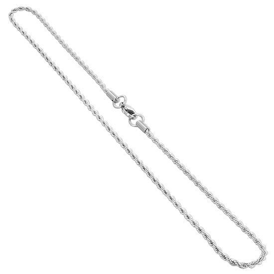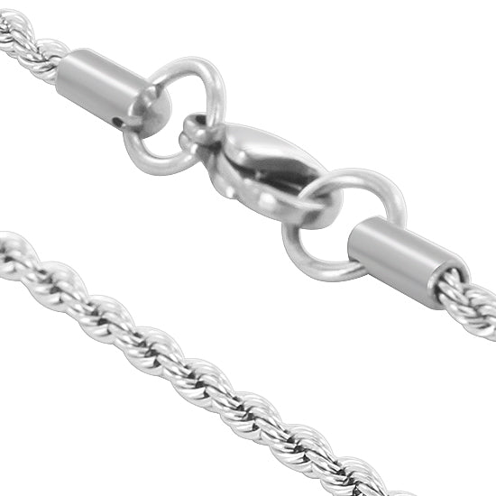 These gorgeous stainless steel chain necklaces are sure must have with any outfit! We offer these rope chain necklaces in a variety of length sizes in order for you to get the perfect fit you’re searching for. We have sizes 18in, 20in, and 22in. These chains have a thickness of 3mm as well as a lobster claw clasp to ensure a secure and comfortable fit. Here at Gem Avenue, we are positive that no customer will be left disappointed!